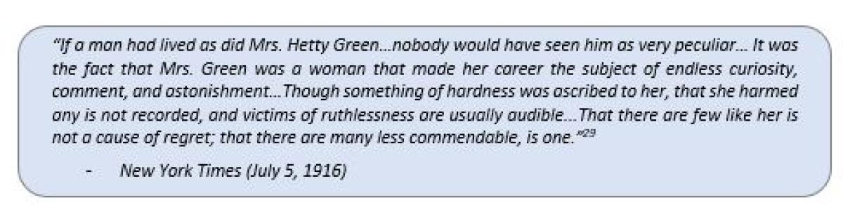 19. “Hetty Green Dies, Worth $100,000,000.” The New York Times. (July 4, 1916).